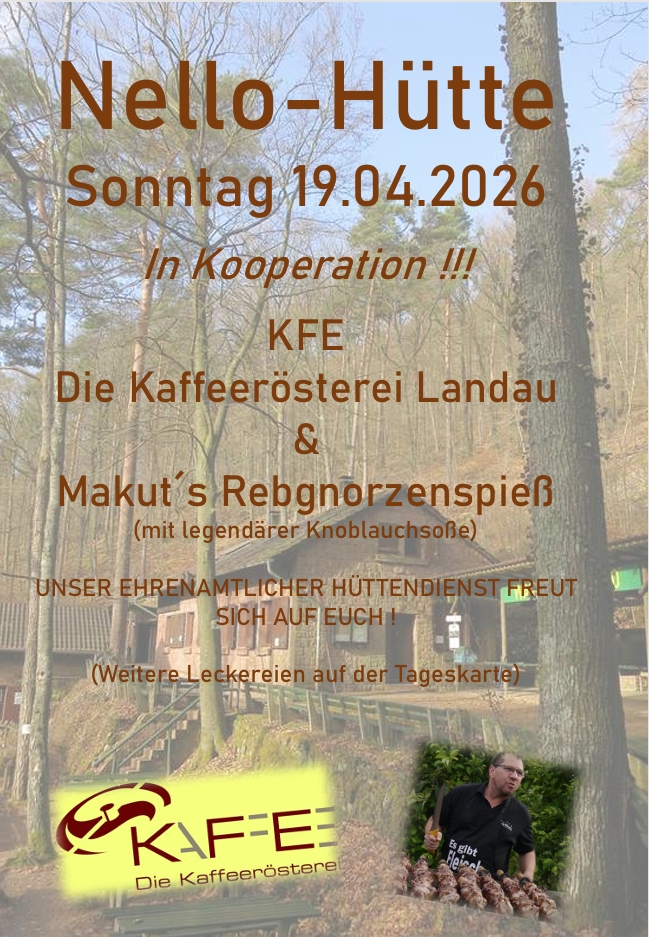 Die Vereinshütte des Wanderclub „Nello e.V“, Landau/Pfalz liegt auf 398 m Höhe im wunderschönen Pfälzer Wald, gut zu erreichen vom Wanderparkplatz am Modenbachtal (K 58 bzw. L 506).